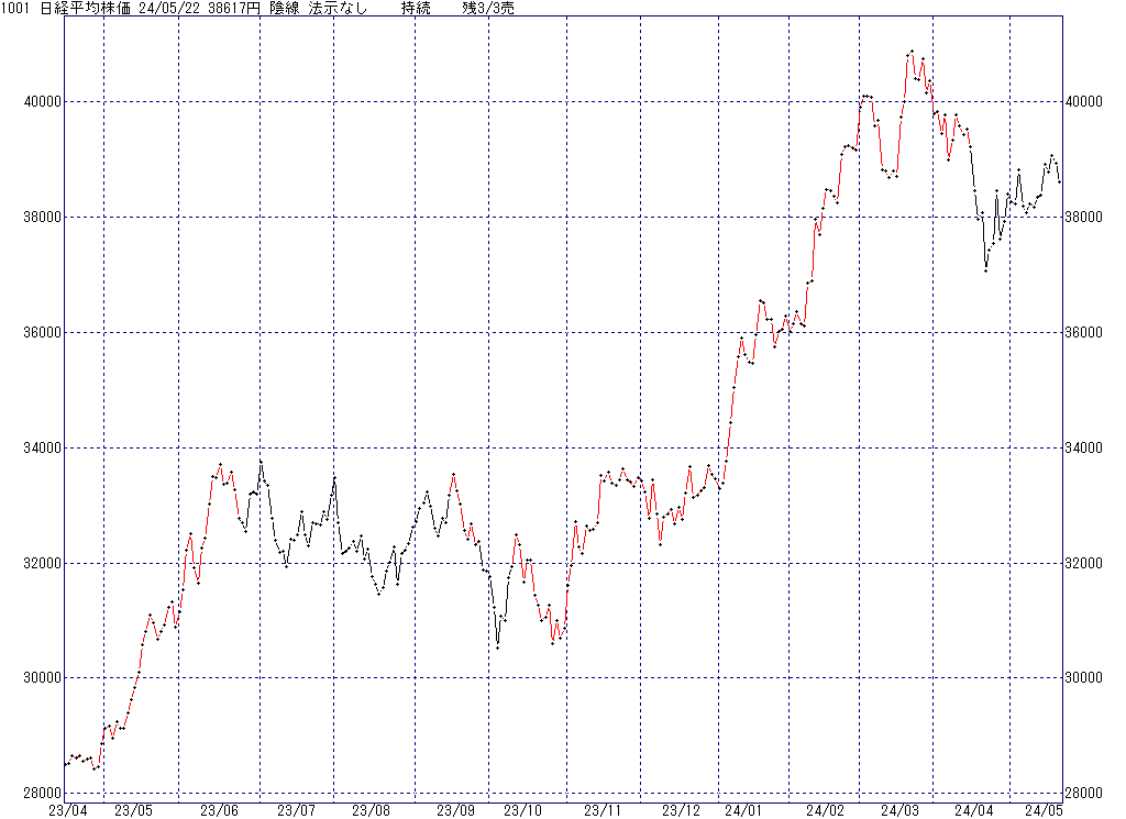 2024年5月22日(水)日中の取引終了時点で算出した中源線シグナルです。