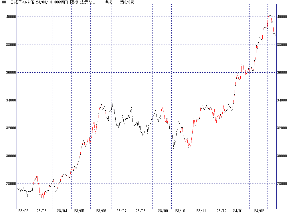 2024年3月13日(水)日中の取引終了時点で算出した中源線シグナルです。