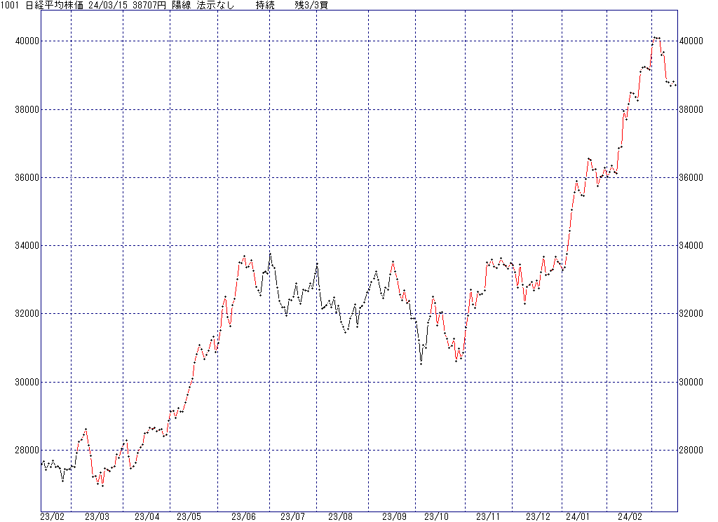 2024年3月15日(金)日中の取引終了時点で算出した中源線シグナルです。