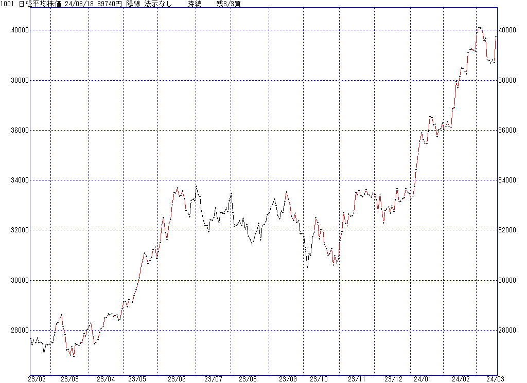 2024年3月18日(月)日中の取引終了時点で算出した中源線シグナルです。