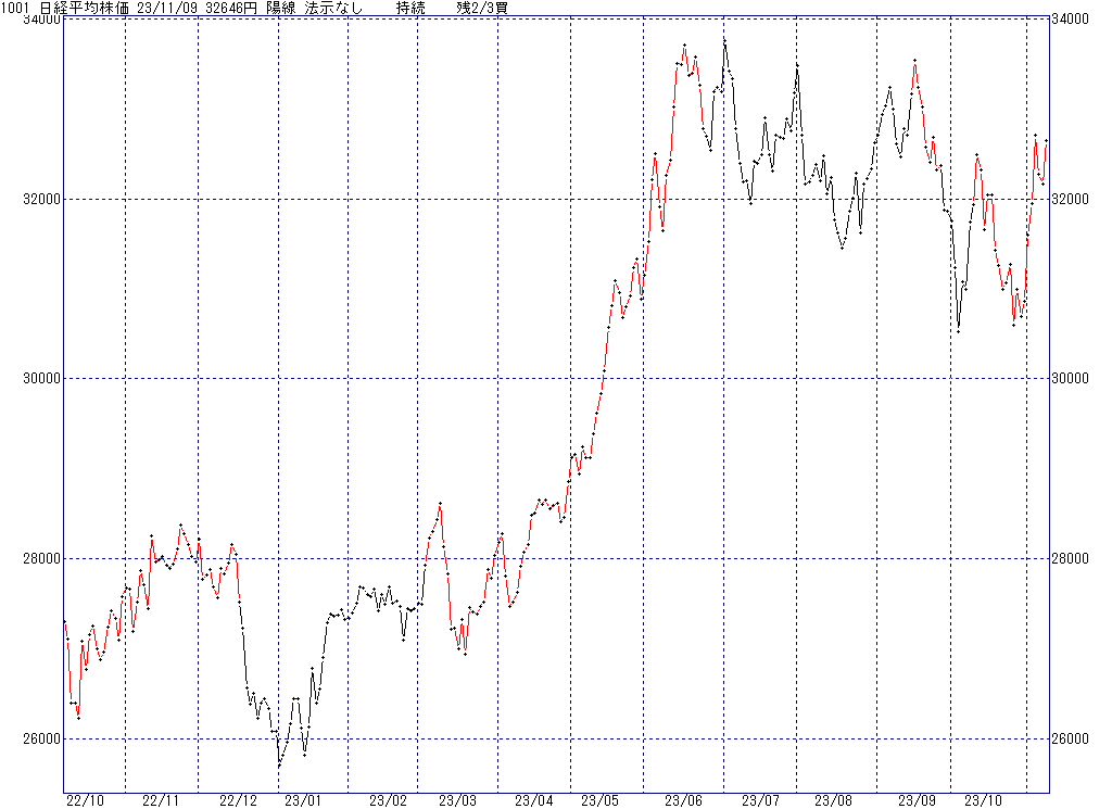 2023年11月10日(金)日中の取引終了時点で算出した中源線シグナルです。