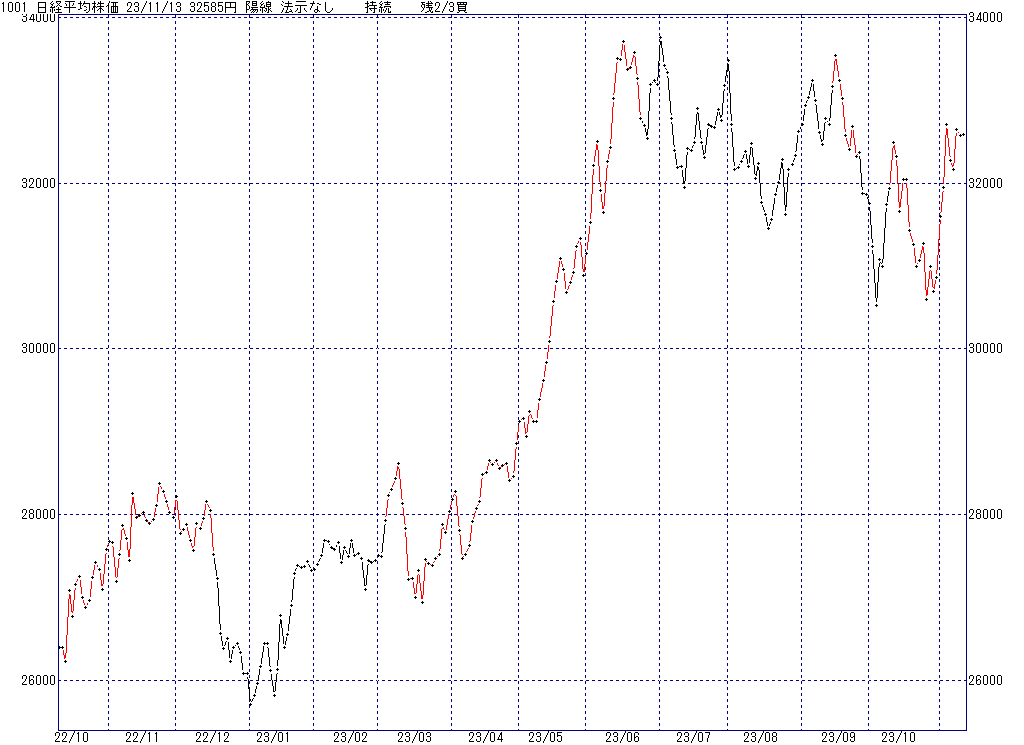 2023年11月13日(月)日中の取引終了時点で算出した中源線シグナルです。