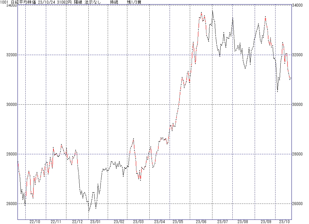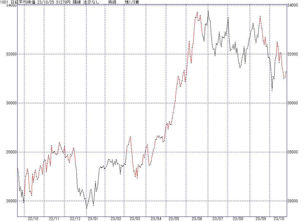 2023年10月25日(水)日中の取引終了時点で算出した中源線シグナルです。