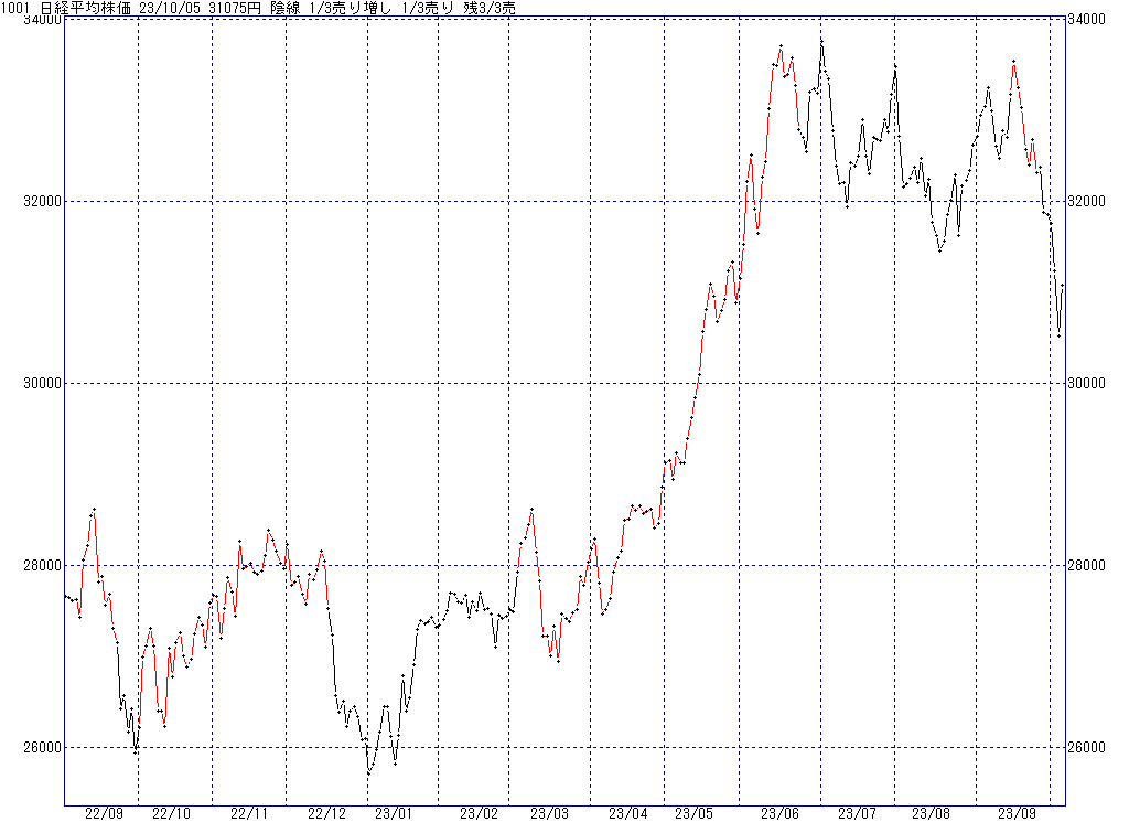 本日のサイン【陰線 1/3売り増し 1/3売り 残3/3売】