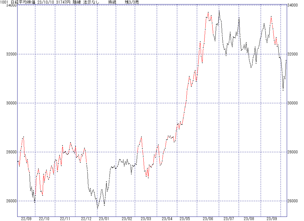 2023年10月10日(火)日中の取引終了時点で算出した中源線シグナルです。