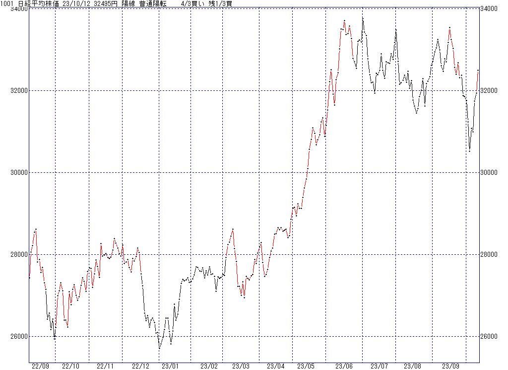 2023年10月13日(金)日中の取引終了時点で算出した中源線シグナルです。
