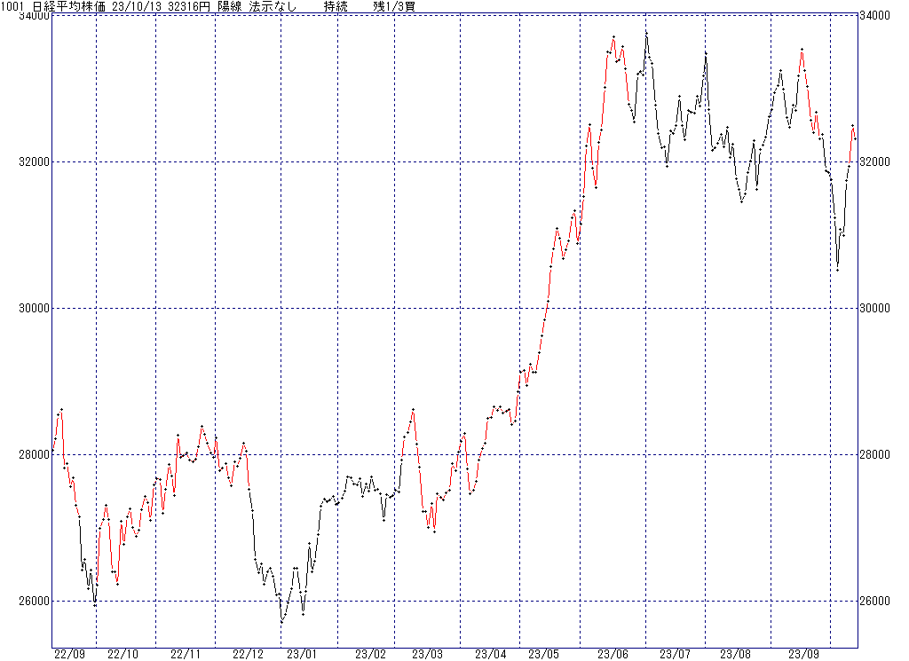 本日のサイン【陽線 法示なし 持続 残1/3買】