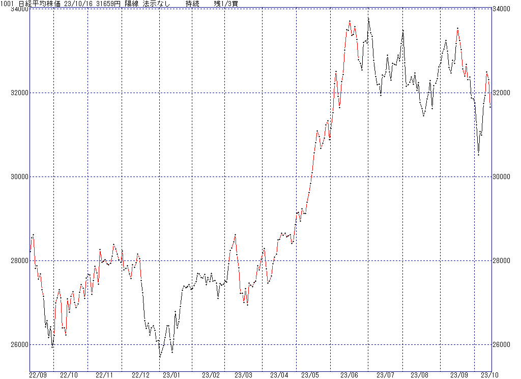 2023年10月16日(月)日中の取引終了時点で算出した中源線シグナルです。