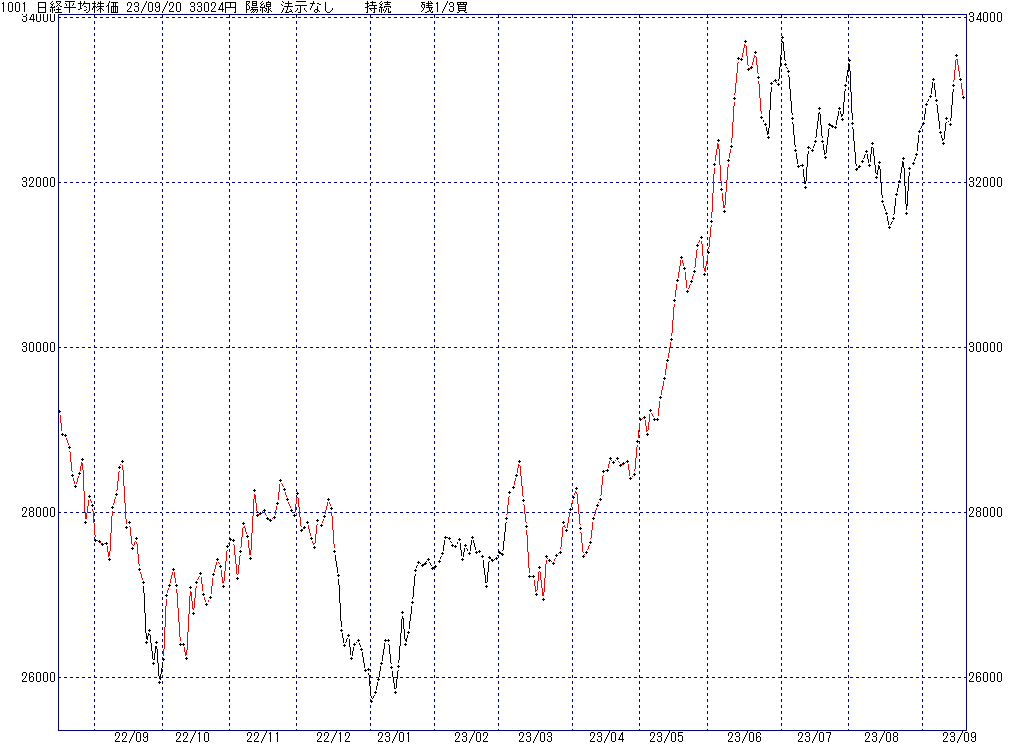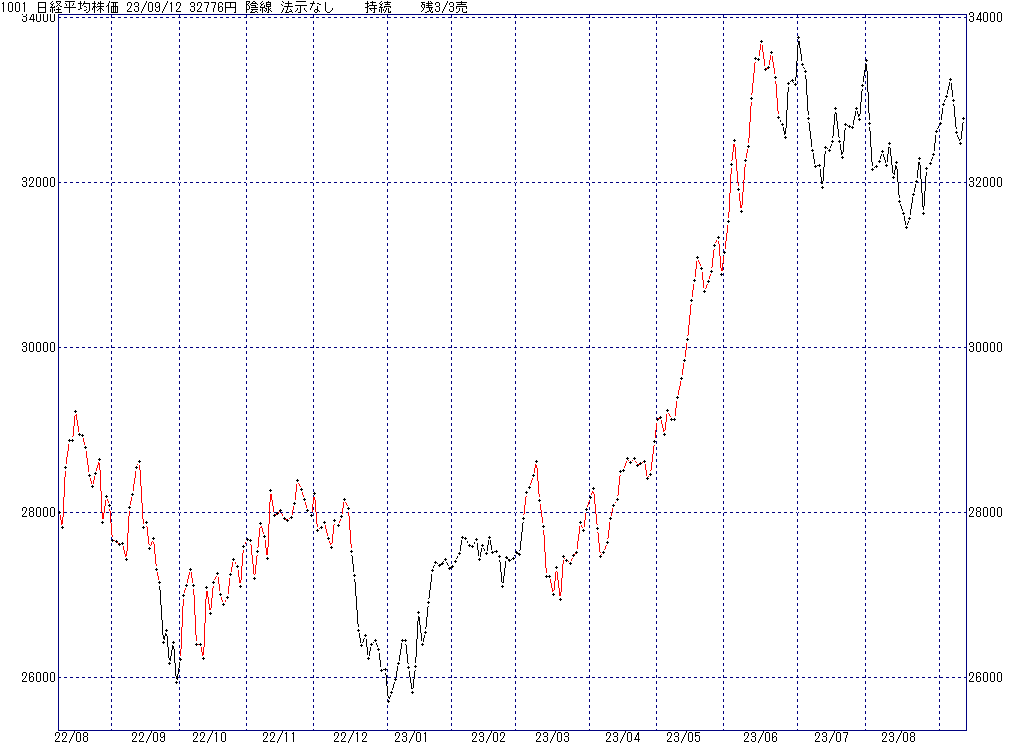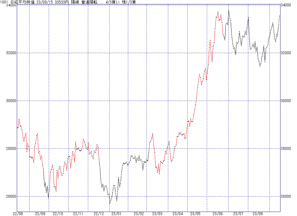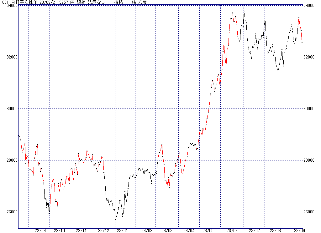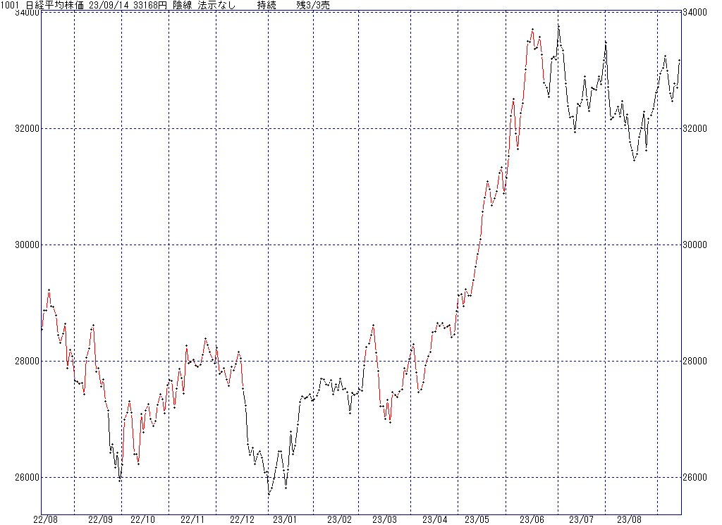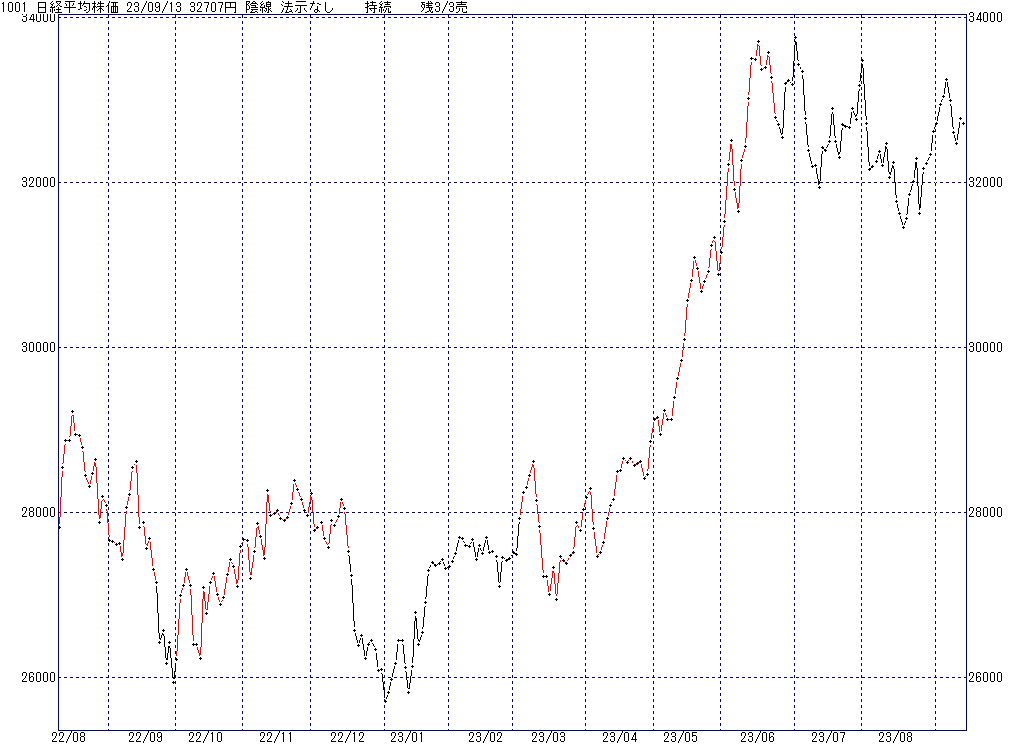 2023年9月13日(水)日中の取引終了時点で算出した中源線シグナルです。
