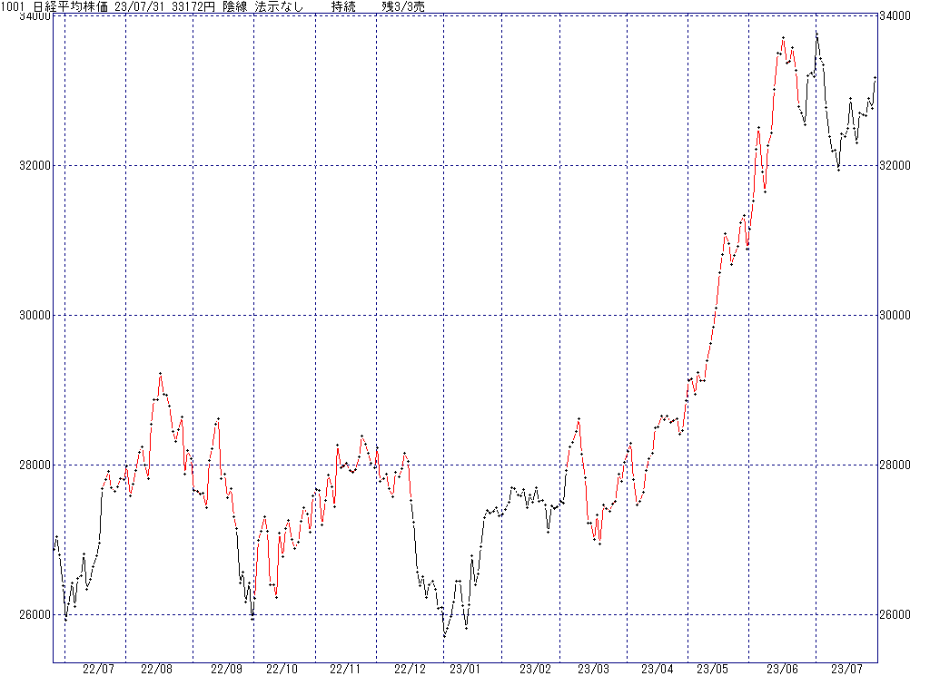 2023年7月31日(月)日中の取引終了時点で算出した中源線シグナルです。