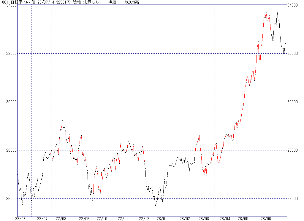 2023年7月14日(金)日中の取引終了時点で算出した中源線シグナルです。