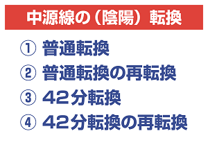 中源線の陰陽転換(強弱判断の切り替え)は、「普通転換」が基本です。