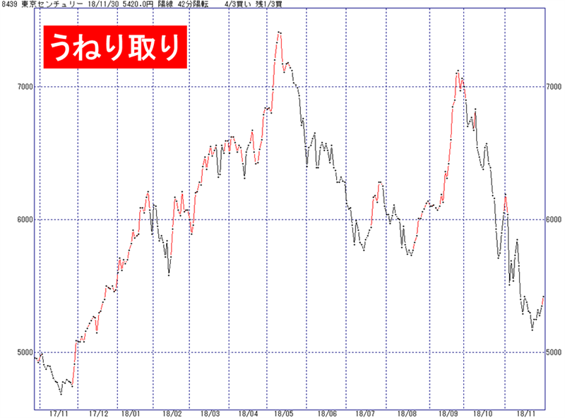11月5日の放送(※)で示した通り、今年の値動きは思った以上に目まぐるしく、それが「取りにくい」という実践者の感覚と一致します。機敏に反応する中源線を用いても、その状況は同じです。