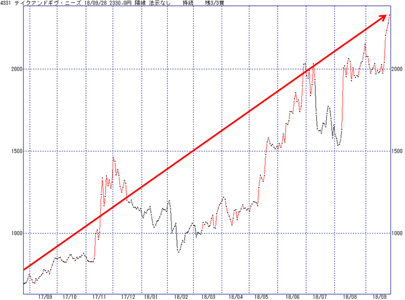 4331テイクアンドギヴ・ニーズは、いい感じで取れています。10月の急落にも、問題ないタイミングで反応していることがわかります。
