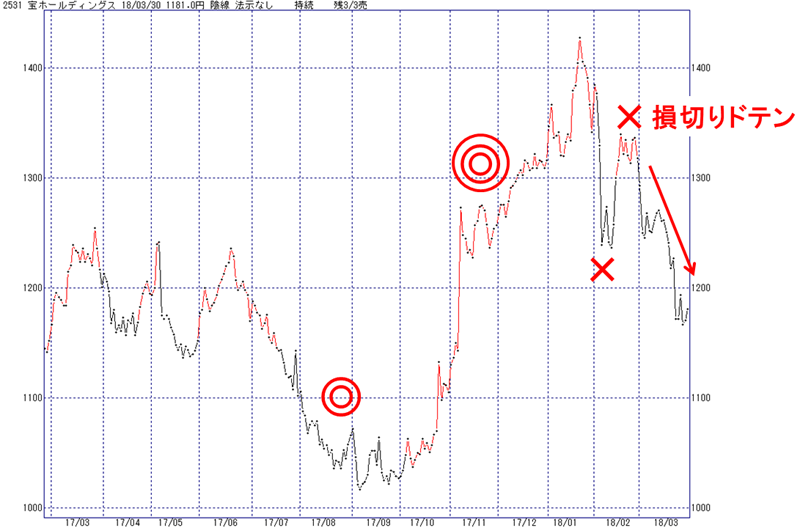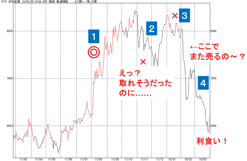 だから、「この銘柄は神だ」みたいな先入観で取り組むと、長く売買する間に発生するであろう“手の合わない”時期に、中源線について、あるいは、トレードそのものについてヘンな誤解をしてしまう可能性があります。