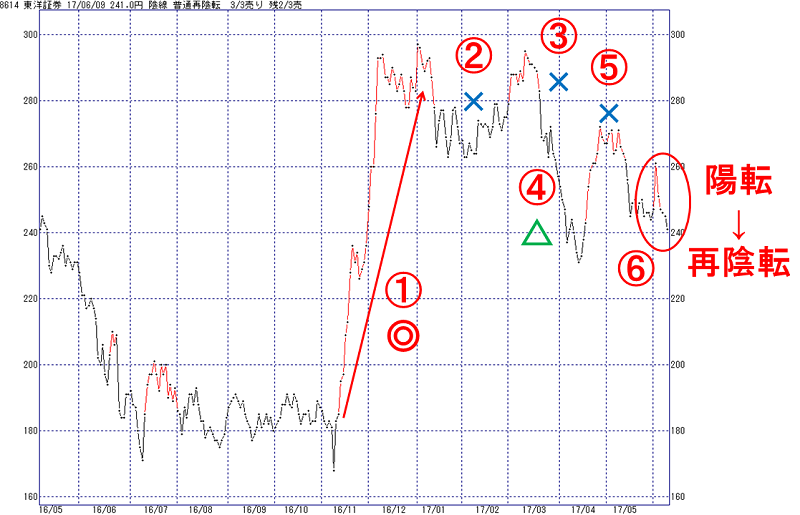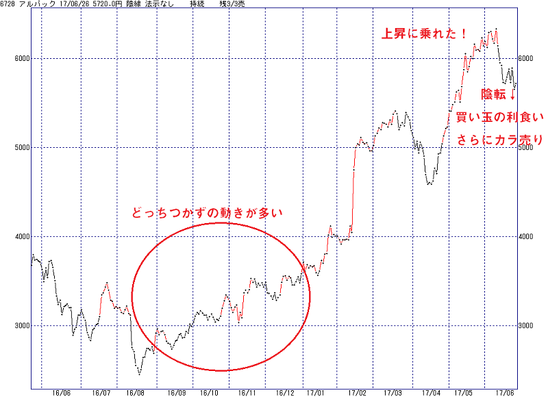 でも、2016年末までのゆるやかな上昇では、中途半端な上げ下げによってダマシの転換も散見されます。