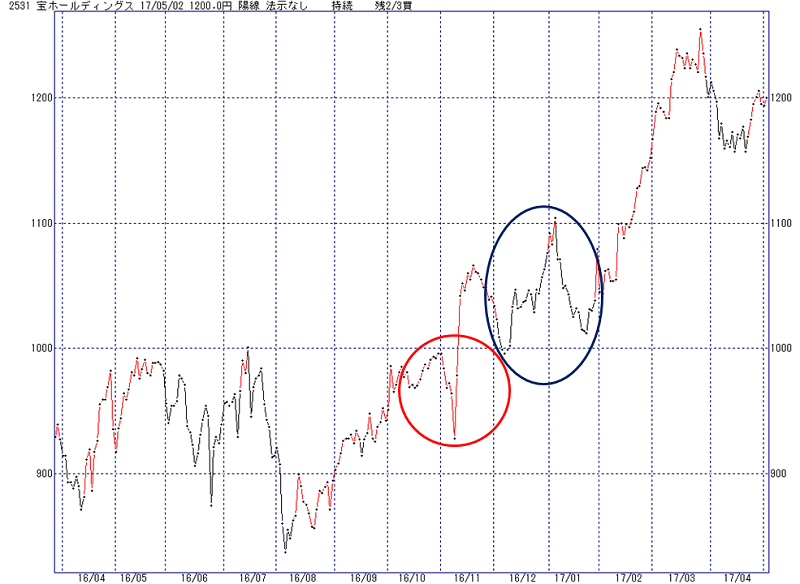 2017年2月に、高値からズルッと下げたところで陰転した(2)