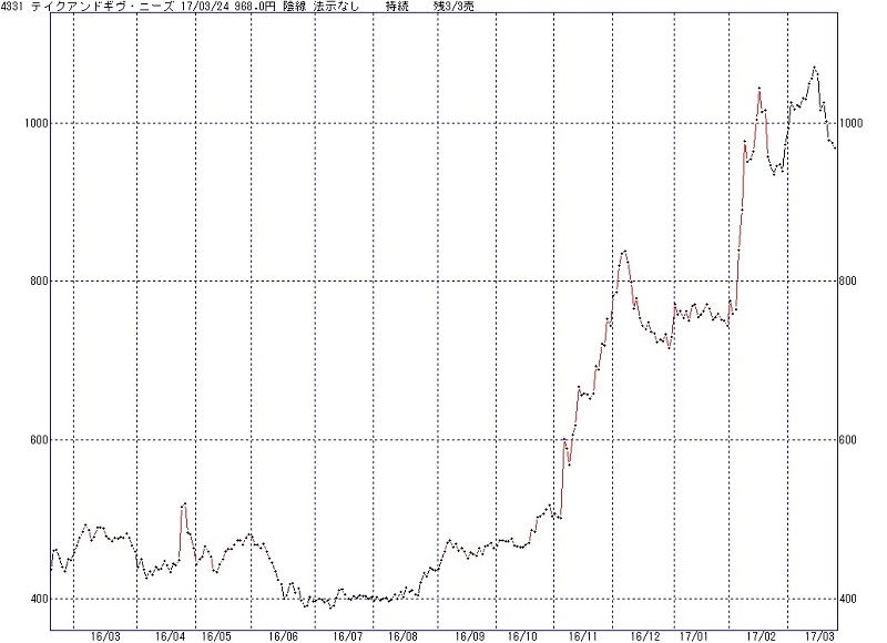 下に示すチャートは、同じくテイクアンドギヴ・ニーズ、放送から3週間後の3月24日大引までのものです。