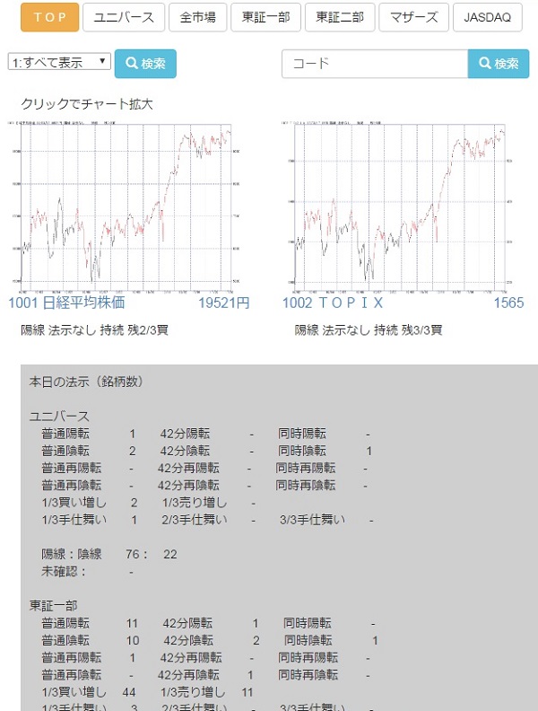 機能には一切の制限を加えず、シグナル配信で対象としている“全上場銘柄”の法示(売買シグナル)を見ることができます。ただし、データは2016年12月30日大引までなので、その点だけはご了承ください。