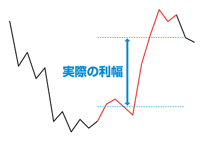 したがって、売りと買いを色分けしたチャートを見たときに、実際よりも大きく取れている錯覚が生じるのです。
