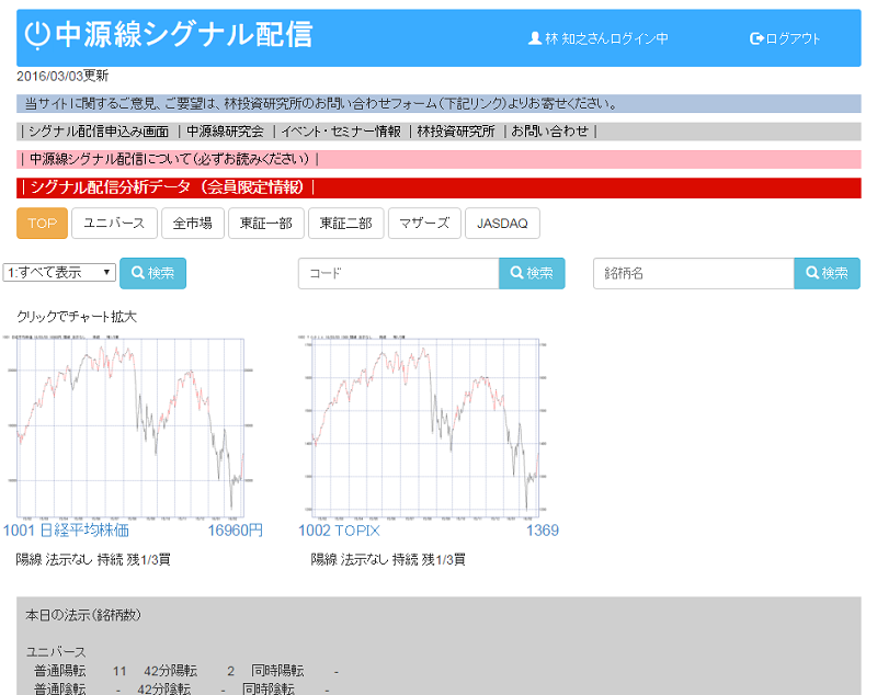 なお、中源線研究会への登録(無料)だけで「シグナル配信トップページ」(日経225とTOPIXのシグナル&チャート、上場全銘柄の集計)を閲覧できます。