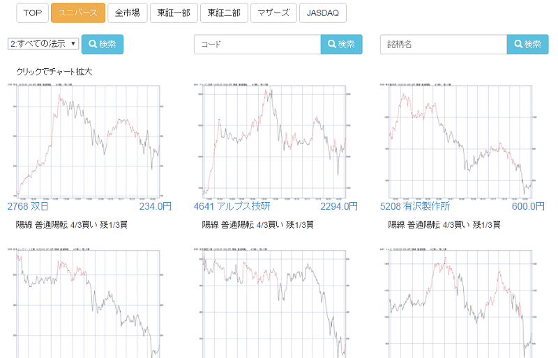 また、ユニバースの場合は、各銘柄の中源線チャートもあります。