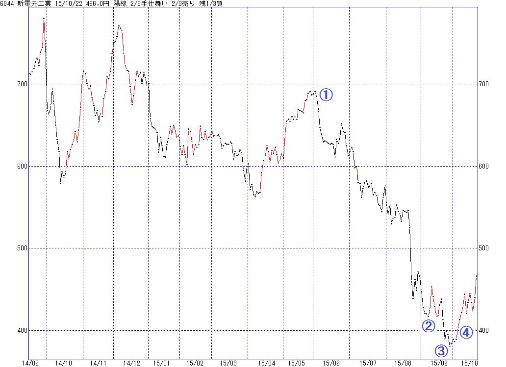 ちなみに10月21日の陽転は、番組でも何度か紹介した「再転換」のルールによるものです。簡単にいえば、“転換後、短期間で再び転換する”ケースです。「再転換」の場合、まずは1/3という原則通りではなく、転換したとたんに2単位を建てるのがルールです。したがって、10月21日の陽転による売買は、「1単位買い返済」「2単位新規の買い」でした。